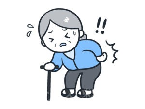 この状態でいきなり立ち上がると、腰の筋肉や膝の関節に強い負担がかかり、痛みが起こりやすくなります。