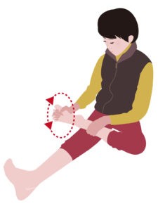 ③最後に座った状態で足首をゆっくり回し、ふくらはぎを軽く揉むと、全身の血流がスムーズになり、膝の動きも良くなります。