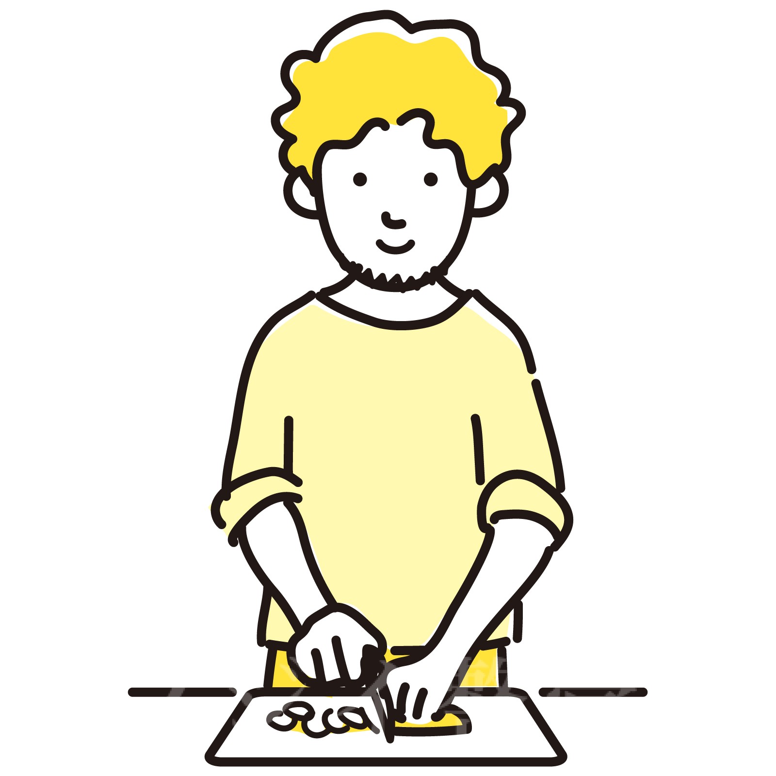例えば、まな板に向かって立つとき、両足をそろえて腕だけで作業すると、手首が固定されて動かず、腱の動きが悪くなります。