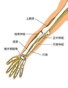 腕の内側には“尺骨神経(しゃっこつしんけい)”という細い神経が通っています。