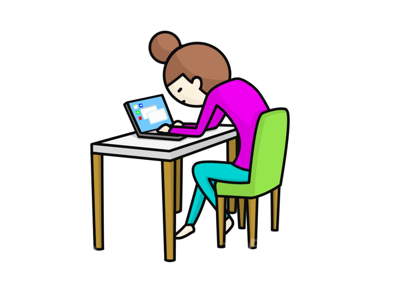 ● 机が低い → 猫背になり、肘が外に開きやすい