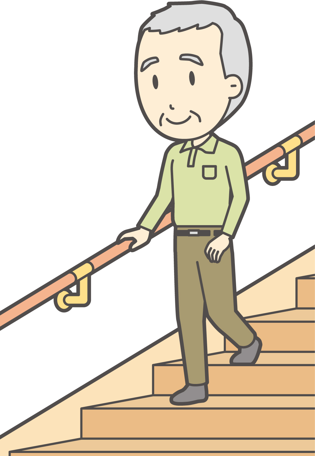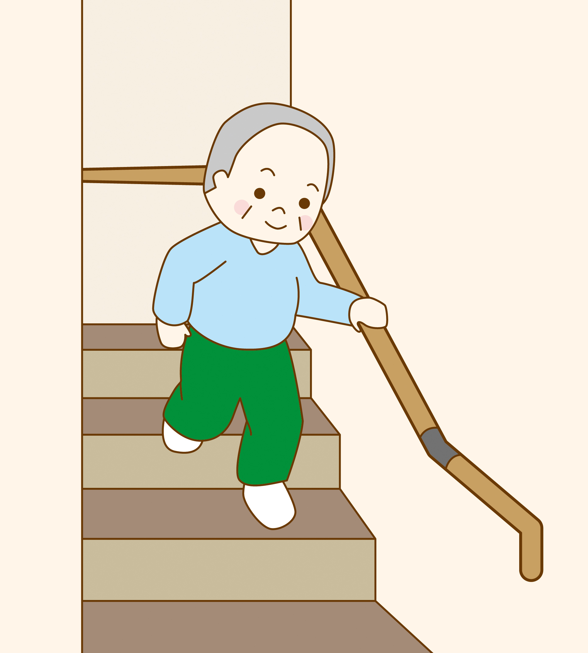 手すりを使う、一段ずつゆっくり下りる、疲れているときは無理をしない。