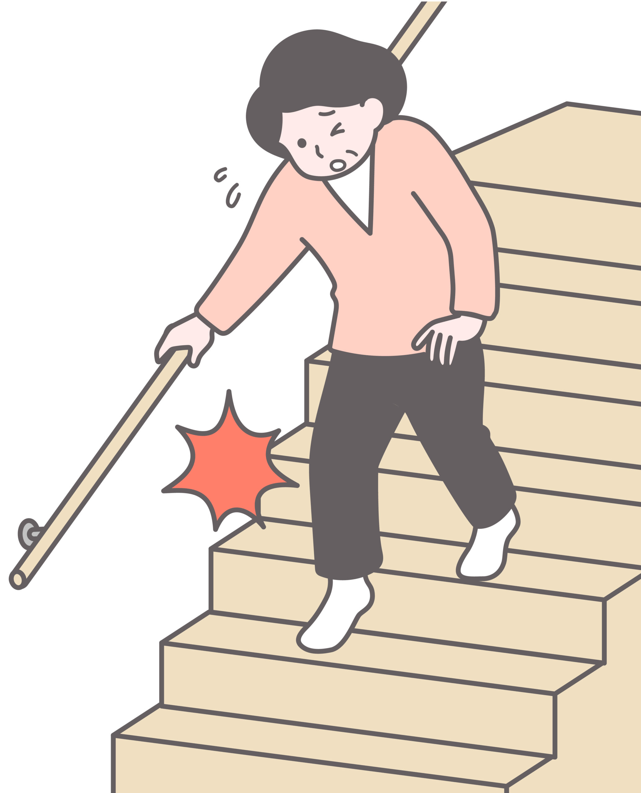 平地を歩くのはそれほど困らないのに、階段になると急に怖さが出る。