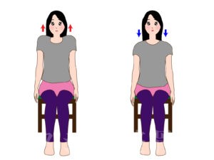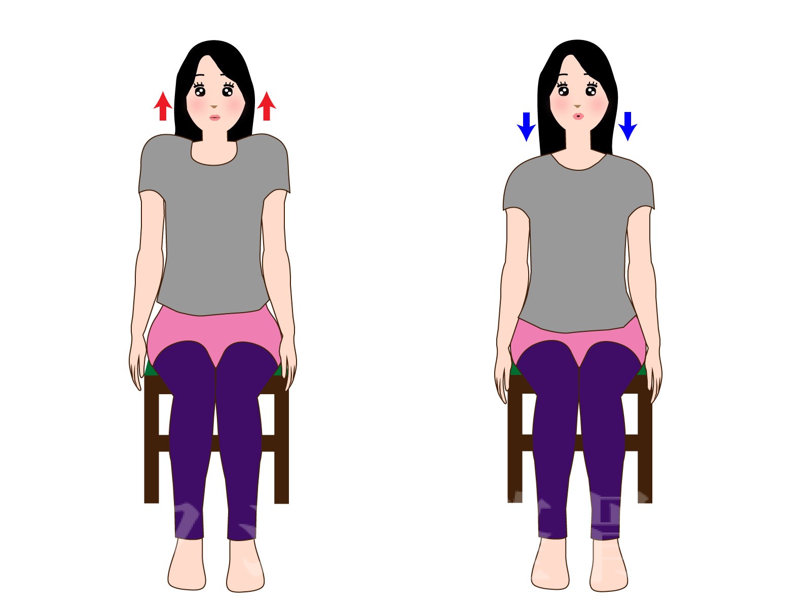 1日に数回、肩を上げて力を入れた後、一気に力を抜く「緊張と弛緩」の運動を行うと効果的です。