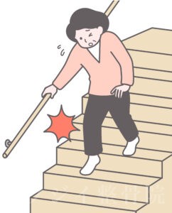 その結果、関節の内側や外側に炎症が起こり、階段を降りる際などに痛みを感じるのです。