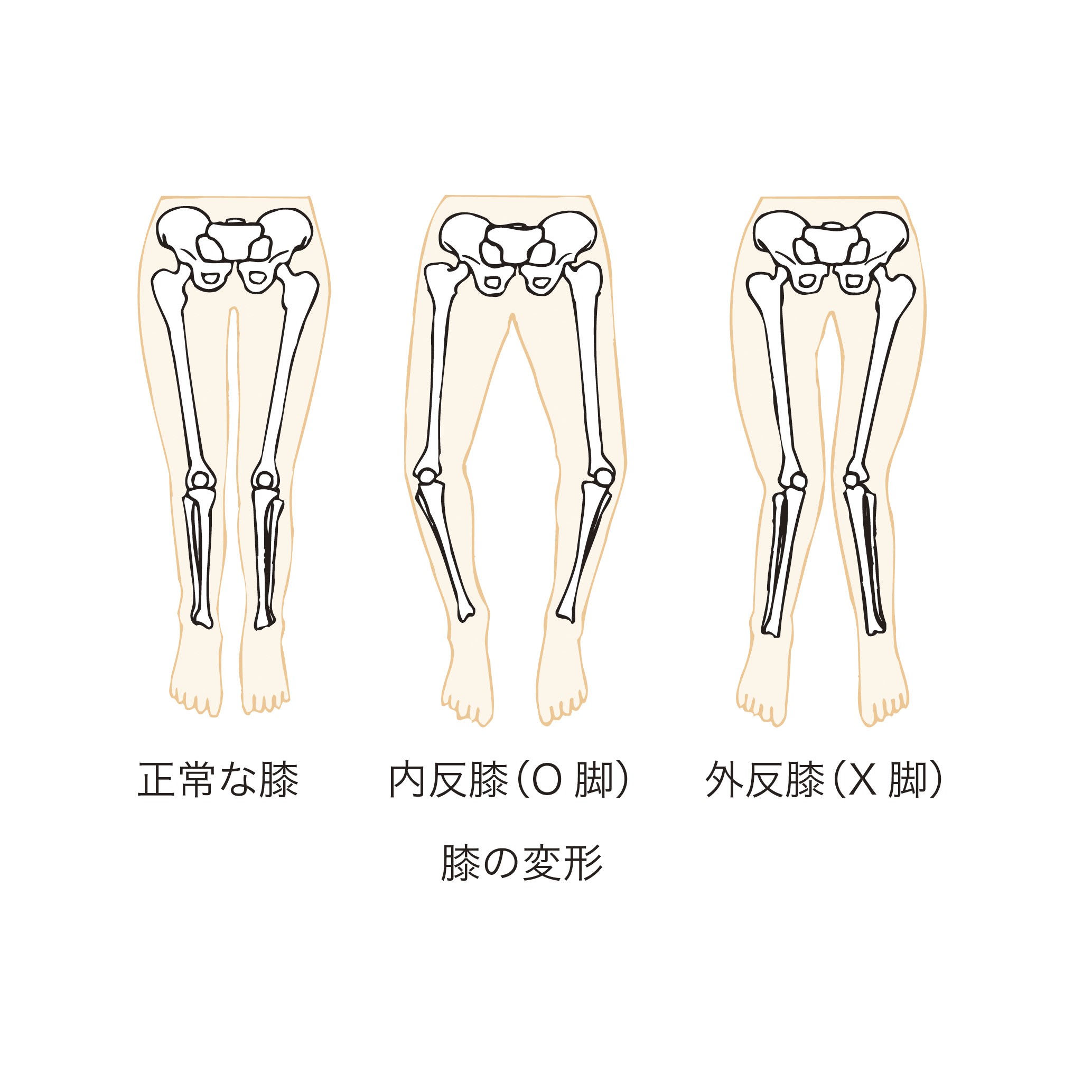股関節や足首のバランスが崩れていると、膝が本来の軌道から外れて動き、膝の一部に集中した摩擦や圧力がかかります。