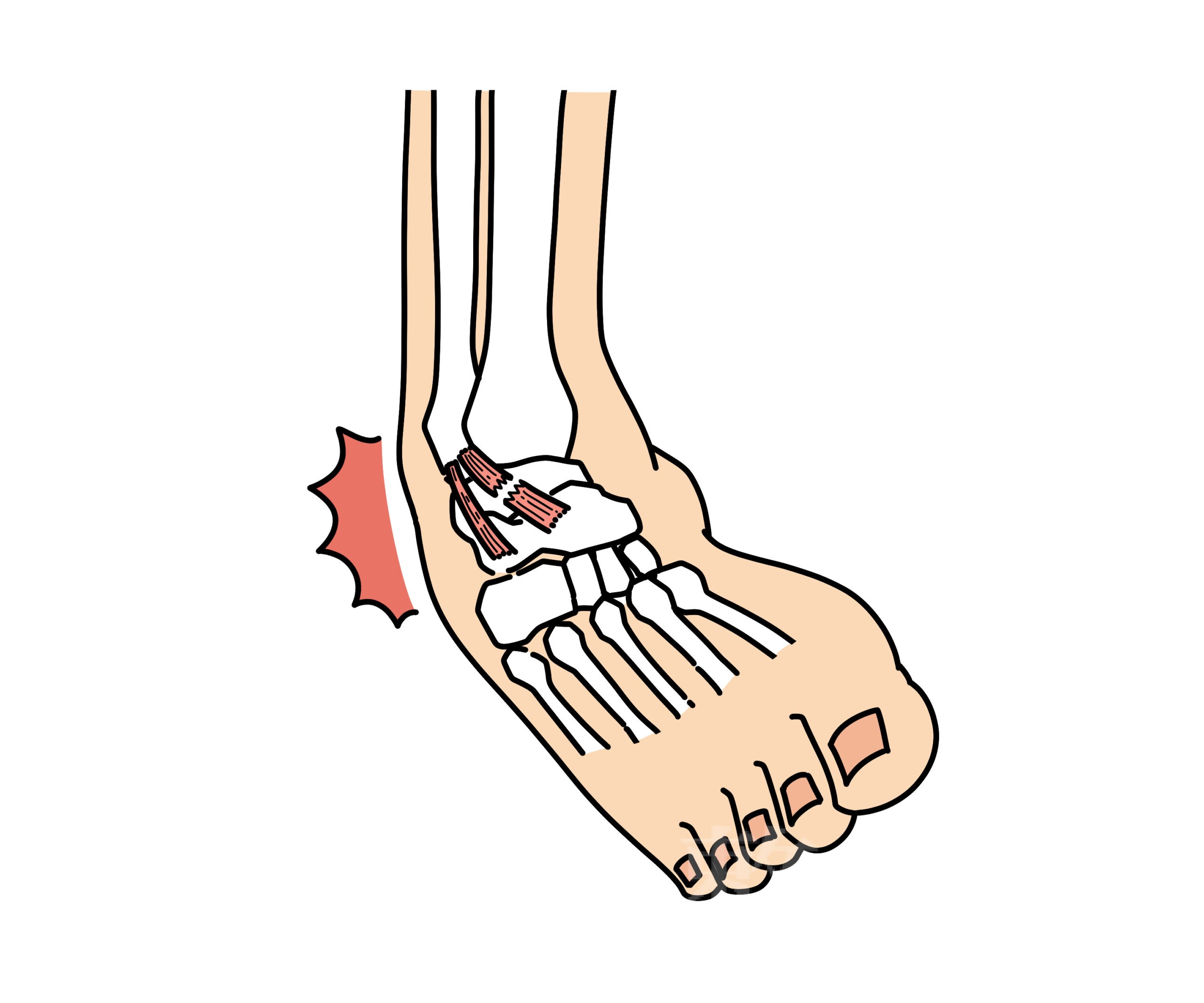 このとき、足首の外側(くるぶしの下)には常に引っ張られるようなストレスがかかり、炎症や痛みの原因になります。